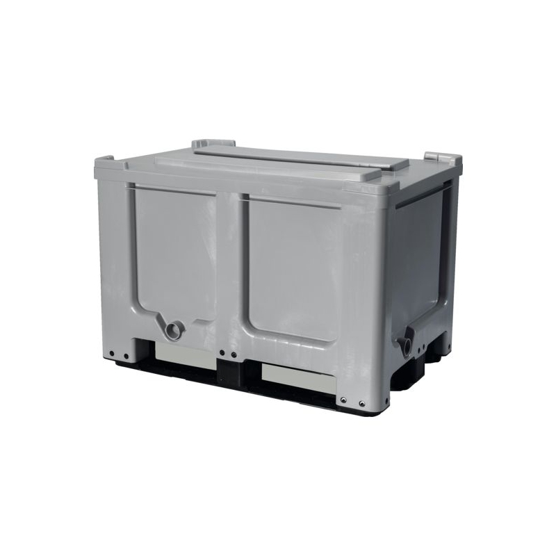 Box étanche en polyéthylène. Ne convient pas pour le stockage de liquides. Résistant à l'acide sulfurique des batteries. Passage de fourches bilatéral. Capacité : 525 l/350 kg Couvercle en option.