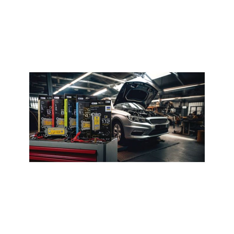Charge automatiquement sans surveillance, tous types de batteries 12 V (acide-plomb). Pour tous types de voitures, utilitaires, camping-car ou camions. Protection de l'électronique embarquée. Pas besoin de déconnecter la batterie du véhicule pendant la charge. Recharge même les batteries fortement déchargées. Alimentation : 230 V Livré avec pinces, cosses M6 (sauf pour Gysflash 8.12)