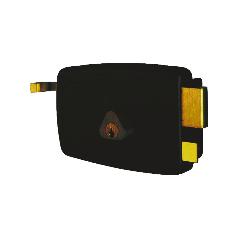 À cylindre laiton. Pêne ½ tour en laiton. Équerre au ½ tour pour manœuvre extérieure. Coffre et gâche acier embouti. Pênes laiton massif. Protection anticorrosion. Livré avec gâche et 3 clés. Course du pêne dormant : 21 mm Finition : époxy noir Modèles horizontaux : Dimensions (LxHxP) : 143 x 99 x 25 mm Entraxe : 60 mm Fouillot carré : 6 mm Modèles verticaux : Dimensions (LxHxP) : 82 x 130 x 25 mm Entraxe : 70 mm Fouillot carré : 7 mm Conditionnement : boite