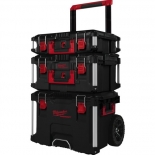 Résistant aux chocs, coins renforcés en métal, point de verrouillage renforcé en métal. Plateau organisateur intérieur. Emplacement de montage pour le ONE-KEY™ TICK™. Poignée supérieure renforcée en métal. Indice de Protection : IP 65 Capacité de charge : 113 kg Ø roues : 228 mm Ensemble composé de : - 1 Packout Trolley Box, - 1 Packout Coffret large, - 1 Packout Coffret.