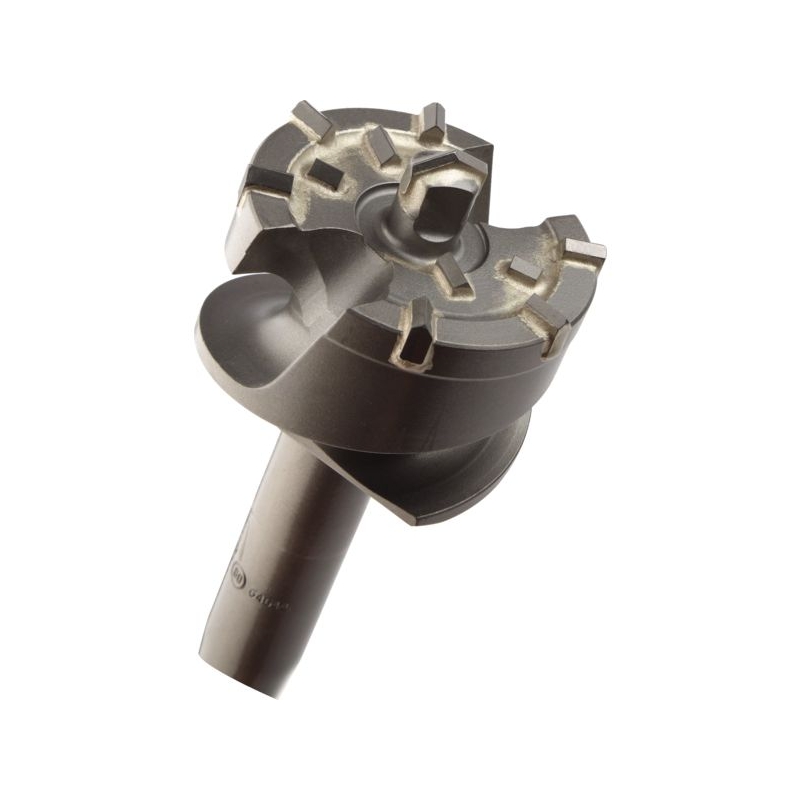 Foret centreur avec plaquette carbure. 4 plaquettes carbure au centre, 6 plaquettes carbure en périphérie. Pour tous travaux de passages de câble, de tubes et tuyaux en rénovation ou en construction neuve. Longueur : 590 mm Emmanchement : SDS-max
