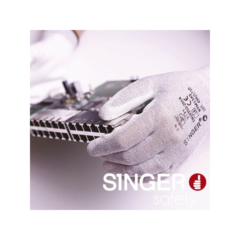 Enduction polyuréthane sur la paume et bouts des doigts. Support tricoté sans couture, polyester et carbone, jauge 13. Dos aéré, poignet élastique. Manutention légère / Milieu sec Applications métiers : environnement comprenant ou risquant de comprendre des zones inflammables ou explosives, manipulations fines en milieu sec, industrie, assemblage de pièces électroniques, emballage, contrôle de produits finis. Taille : 7 à 11 Norme : CE Cat II - EN 388 (2131X) - EN 16350