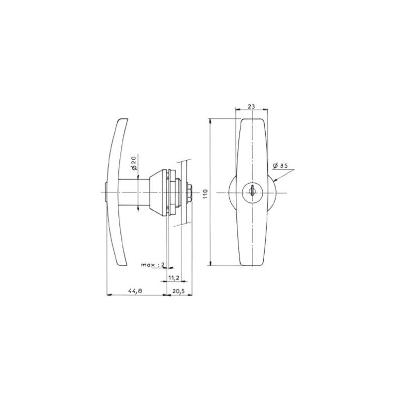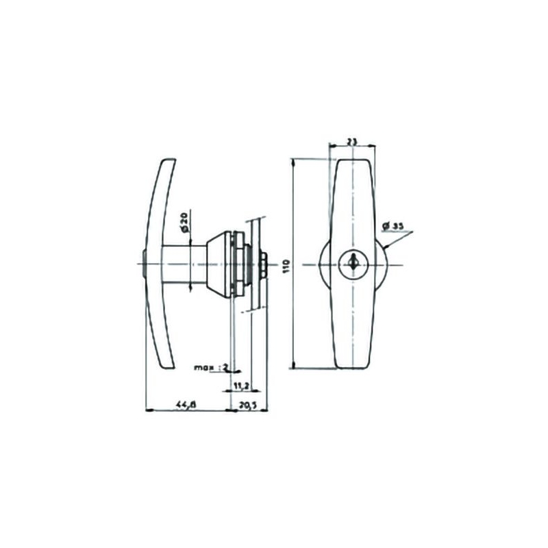 Rotation ¼ tour - droite ou gauche. 2 sorties de clé. Livrée avec 2 clés, un écrou de fixation et une vis - 1 came 1095-755.